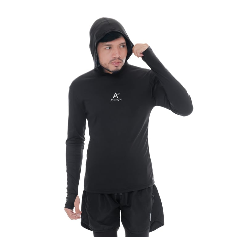 AURION Baselayer Hoodie Manset Kupluk Lengan Panjang Atasan Olahraga Pria Wanita